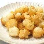 切り餅を使い、あられを作ります。油で揚げてさくさくの食感に。味付けは塩と青のりです