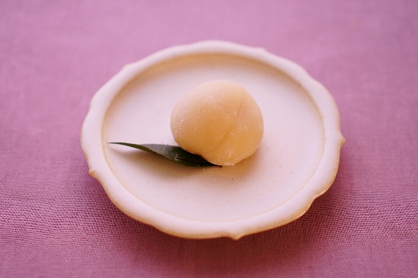 西王母は3月3日「上巳の節句」の和菓子。桃の形を外郎で作ります。