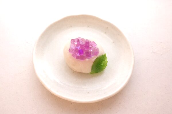 雪平は求肥に卵白と白あんを加えたもち菓子で、真っ白な仕上がりが特徴。