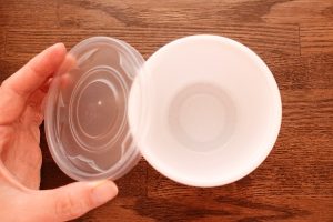 容器は汁漏れしにくいタイプ。テイクアウトも安心してお持ち帰りいただけます(斜めにせず、お持ち帰りくださいませ)